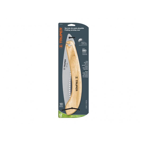 Ferastrau pentru tuns marca Truper. Lungimea lamei de taiere este de 304.8 mm. Maner rabatabil din lemn.