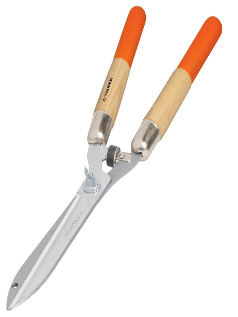 Foarfeca pentru gard viu marca Truper. Lungime totala 56 cm. Manere din lemn lacuit cu acoperire aderenta. Foarfeca este fabricata din otel de calitate si este prevazuta cu amotrizor din cauciuc.