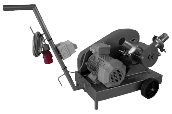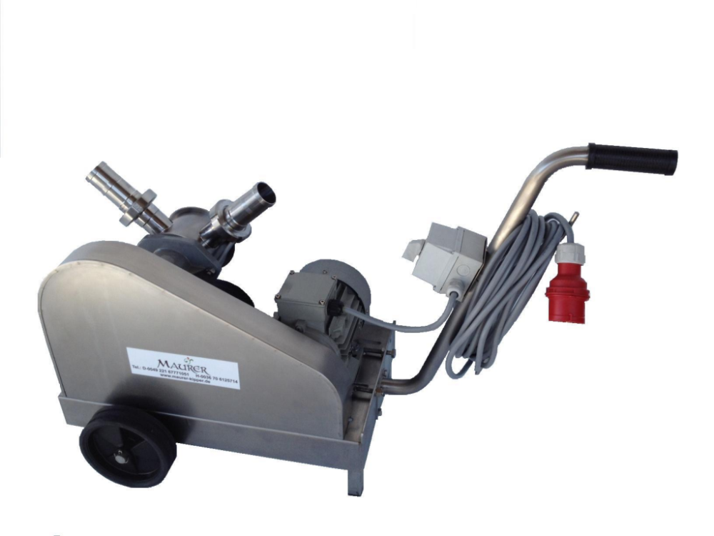 Pompă de transfer lichide și borhot, cu palete de cauciuc. Corp pompă: inox. Debit: 12.000 litri pe oră. Putere motor: 1,5 kW trifazic. Greutate: 48 kg. Lungime: 450 mm. Lățime: 1100 mm. Înălțime: 450 mm