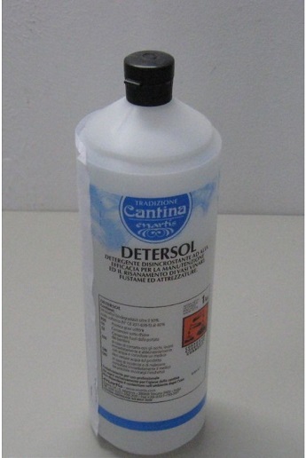 Detersol este un igienizant cu efect de detartrare utilizat cu success la curatarea vaselor din beton, inox sau lemn si a altor echipamente folosite in vinificatie. Se recomanda produsul la tratarea suprafetelor afectate de mucegaiuri si la igienizarea vaselor otetite. Se poate folosi cu succes si la indepartarea pietrei vinului din vasele de ciment si la indepartarea depunerilor de culoare ale vinurilor rosii. Substanta activa este acidul sulfuric 10%.
